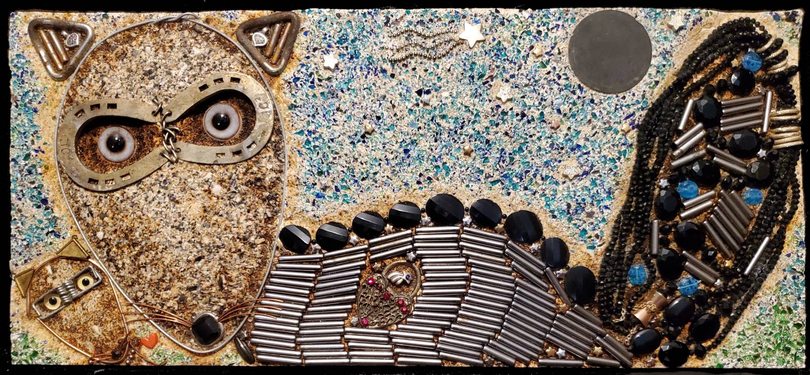 This original, handmade plaster casting depicting a Raccoon Family, was designed using both natural and man-made objects found during environmental clean-ups. This piece embodies the vital environmental message proclaiming the urgency of keeping our waterways clean and healthy.